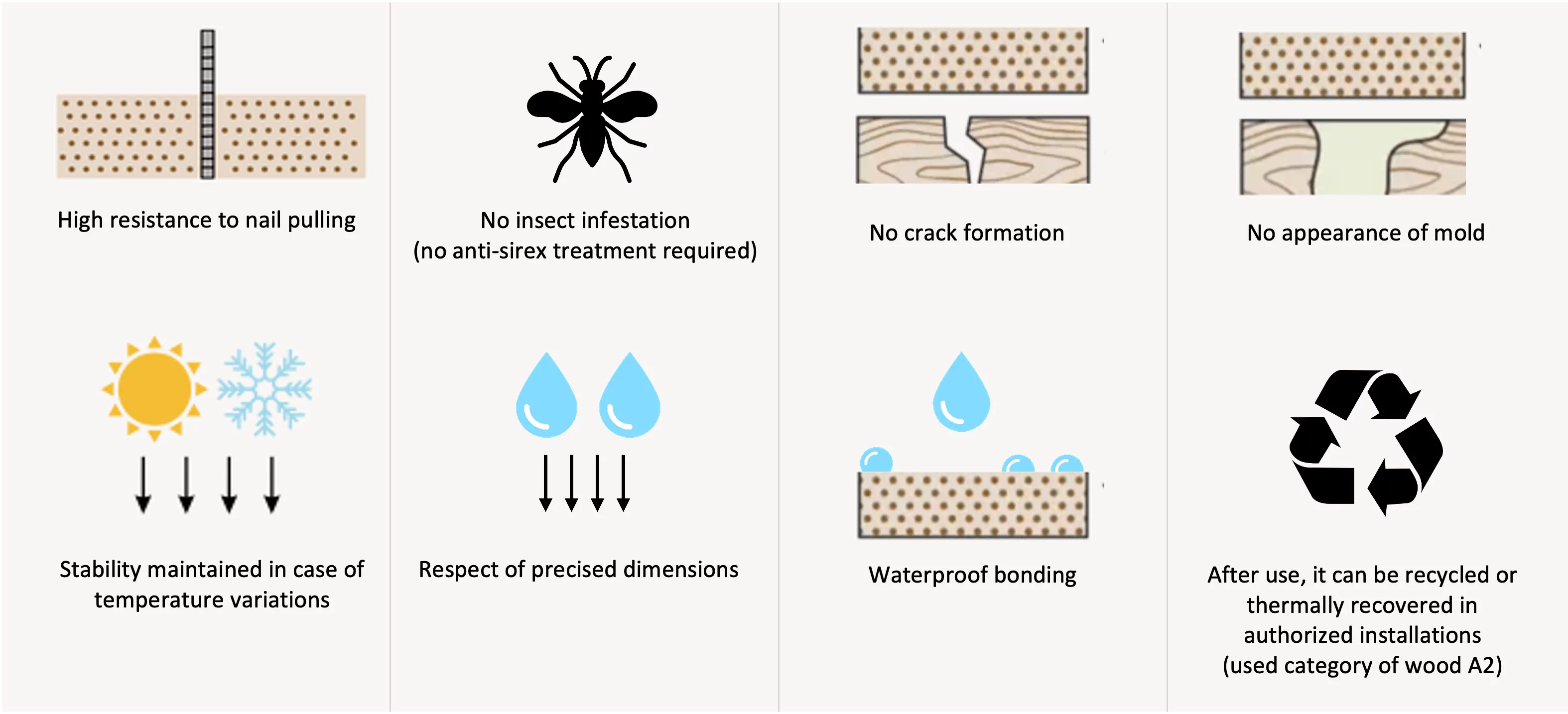 • After use, the product can be recycled or thermally recovered in authorized installations (cat. of Wood used A2)